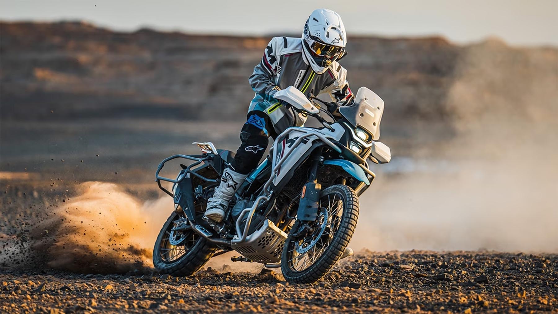 Die CFMoto 450 MT erreichte im sechsten Gang knapp über 150 km/h auf dem sehr übersichtlichen TFT-Display. Dann setzte der Begrenzer der Sache ein Ende, was darauf schließen lässt, dass die CF Moto 450 MT knackig kurz übersetzt ist. Ausgezeichnet gefiel die Laufkultur des Reihenzweizylinders. Zwar quittiert er Gaswechsel mit einem Zucken, aber über die gesamten Drehzahlen lief er auffällig weich, vibrierte nie störend und rappelte zu keinem Zeitpunkt. Wohl ein Verdienst der doppelten Ausgleichswelle. Zum Charakter des 450ers trägt auch der Kurbelwellenversatz von 270 Grad bei, Ähnlichkeiten zu einem V2 also Absicht. Allerdings gehen ihm wie schon erwähnt die vom V2 bekannten Schläge bei niedrigen Drehzahlen komplett ab. Im Gelände ließen sich die etwas störenden Lastwechsel über die fein dosierbare und leicht zu betätigende Kupplung nahezu eliminieren. Zum guten Grundcharakter des Motors passt das sauber schaltbare Sechs-Gang-Getriebe, das kurze Schaltwege bietet – hervorragend hauptsächlich im stehenden Betrieb.