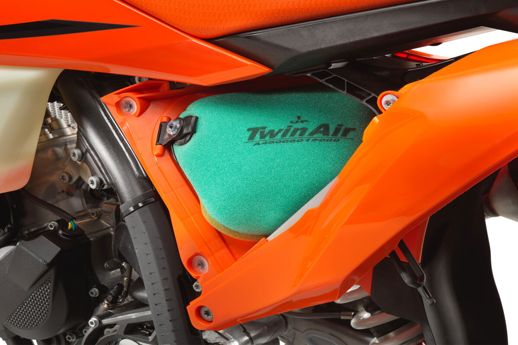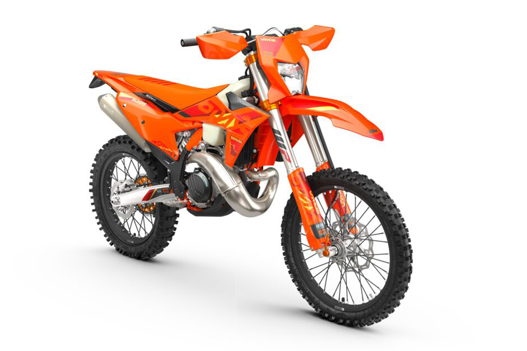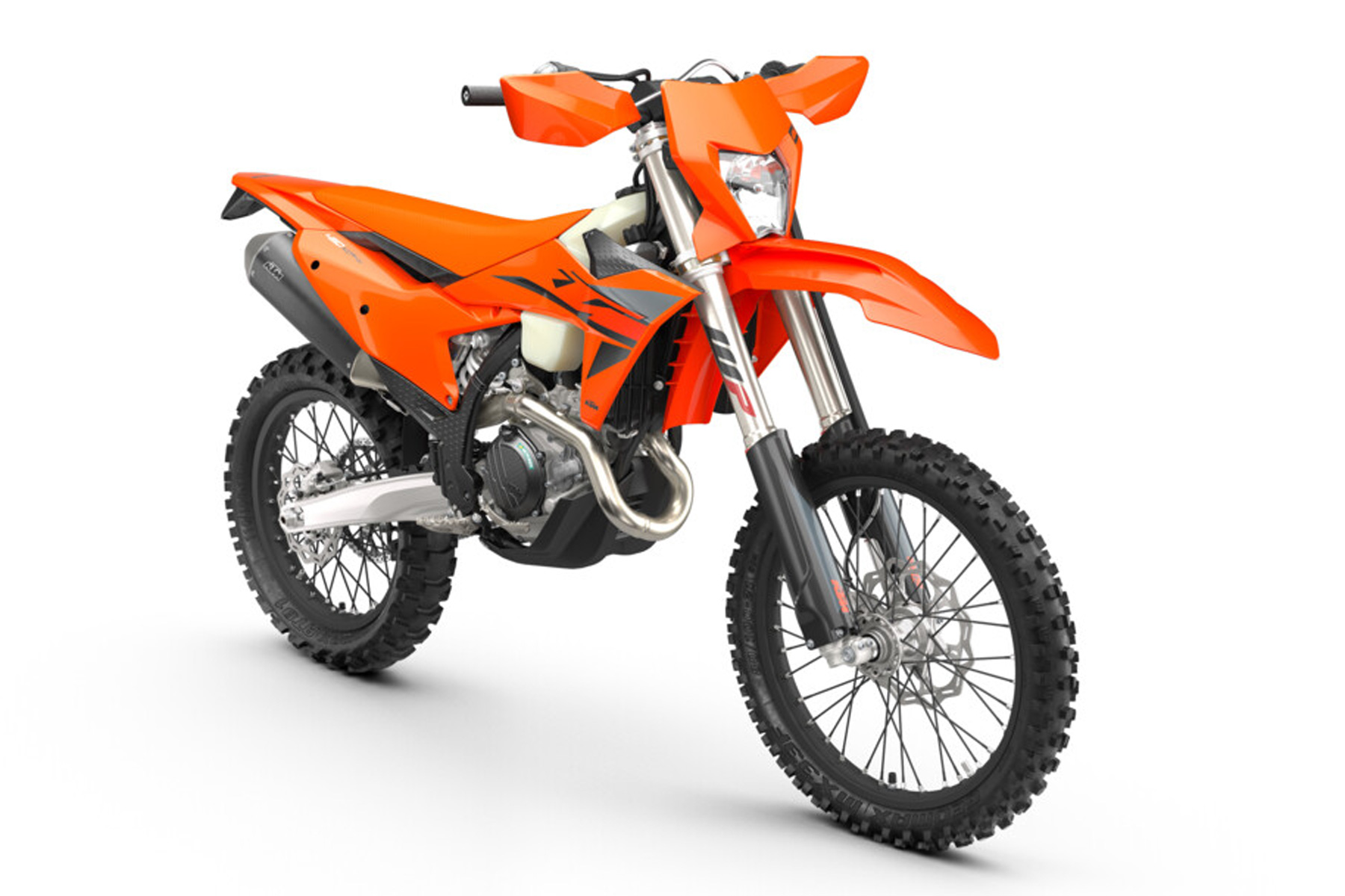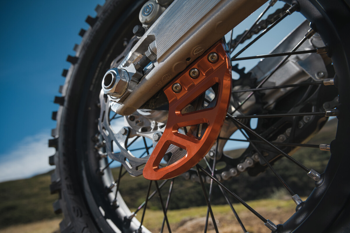 Am hinteren Ende sorgt das WP XPLOR PDS-Federbein mit neuen Einstellungen für eine verbesserte Druckbalance und geringeres Kavitation. Der Schwingarm erhält ein Update mit einer bearbeiteten Einheit, die die Haltbarkeit des Kettenschleifers verbessert. An der Vorderseite sorgt eine neue Tankhalterung für eine festere Befestigung des Tanks und schützt gleichzeitig den Rahmen vor Abnutzung. Am Lenker wird ein neuer Ein-/Ausschalter aus der KTM SX-Reihe übernommen.