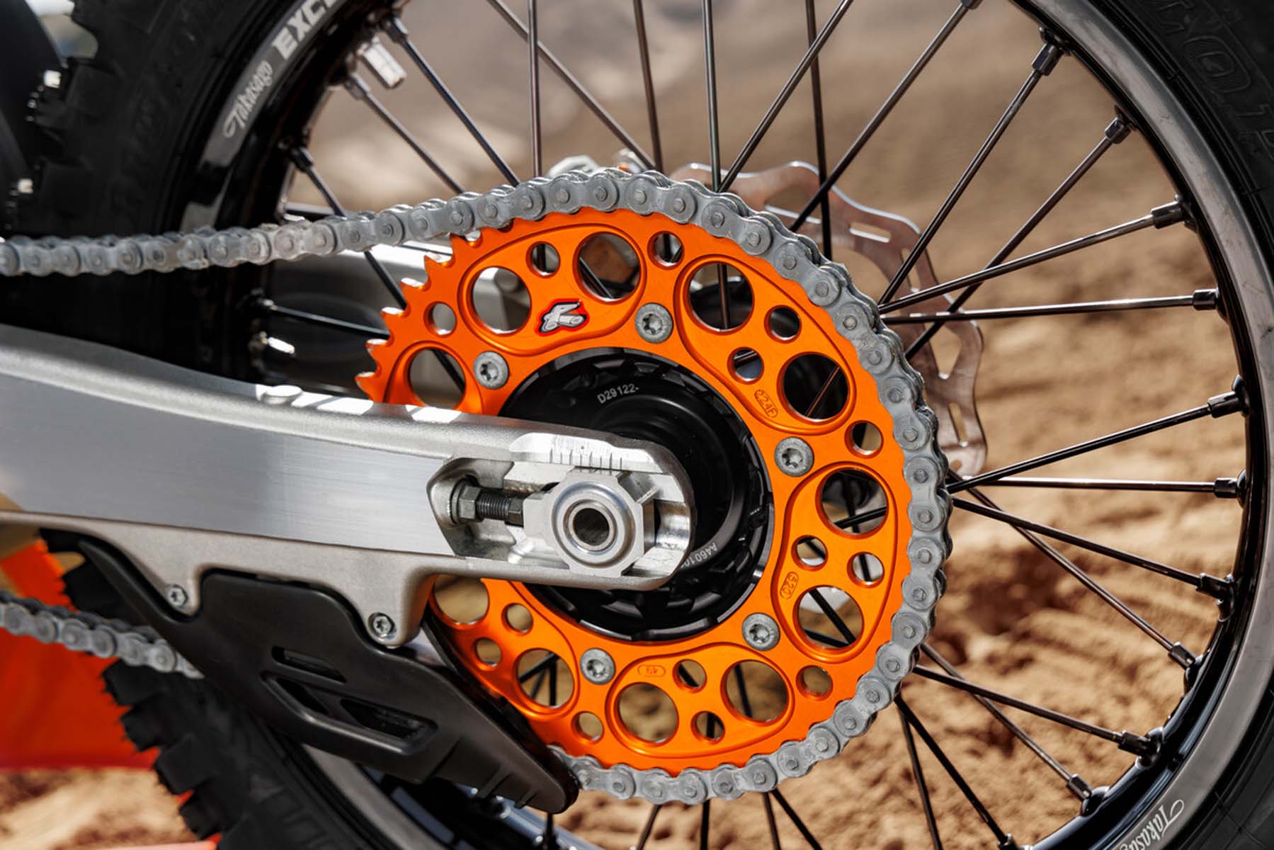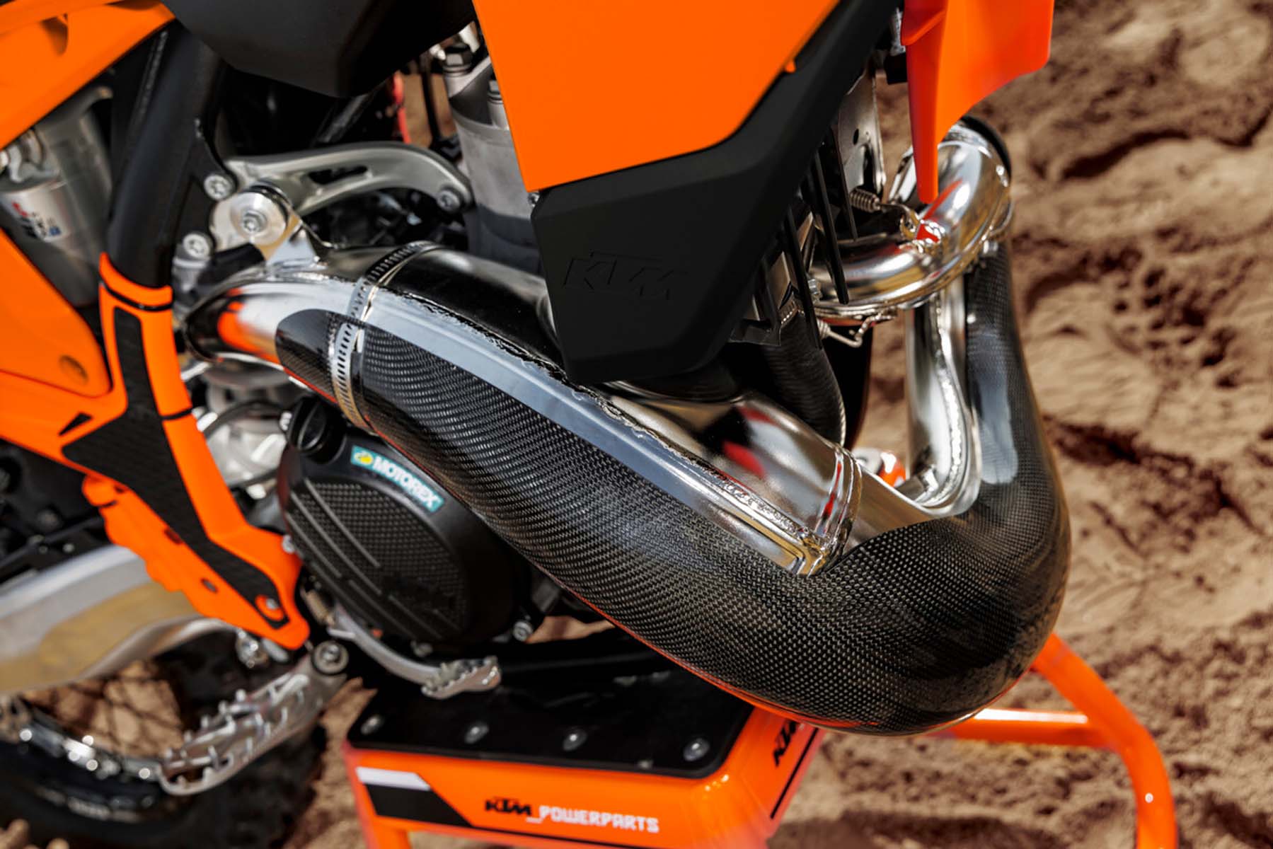 Am Heck profitiert das WP XACT-Federbein von der überarbeiteten Umlenkung mit erneuerten Dichtungen und Umlenkungsschrauben mit kleinerem Durchmesser. Dieses Set-up wurde direkt vom KTM Factory Racing Team übernommen und optimiert, um von der Gewichtseinsparung und Steifigkeit profitieren zu können. Abgerundet wird die Überarbeitung am Heck von den neuen Einstellungen der WP XACT AER-Gabel, die eine größere Flexibilität und ein geringeres Gewicht ermöglichen.